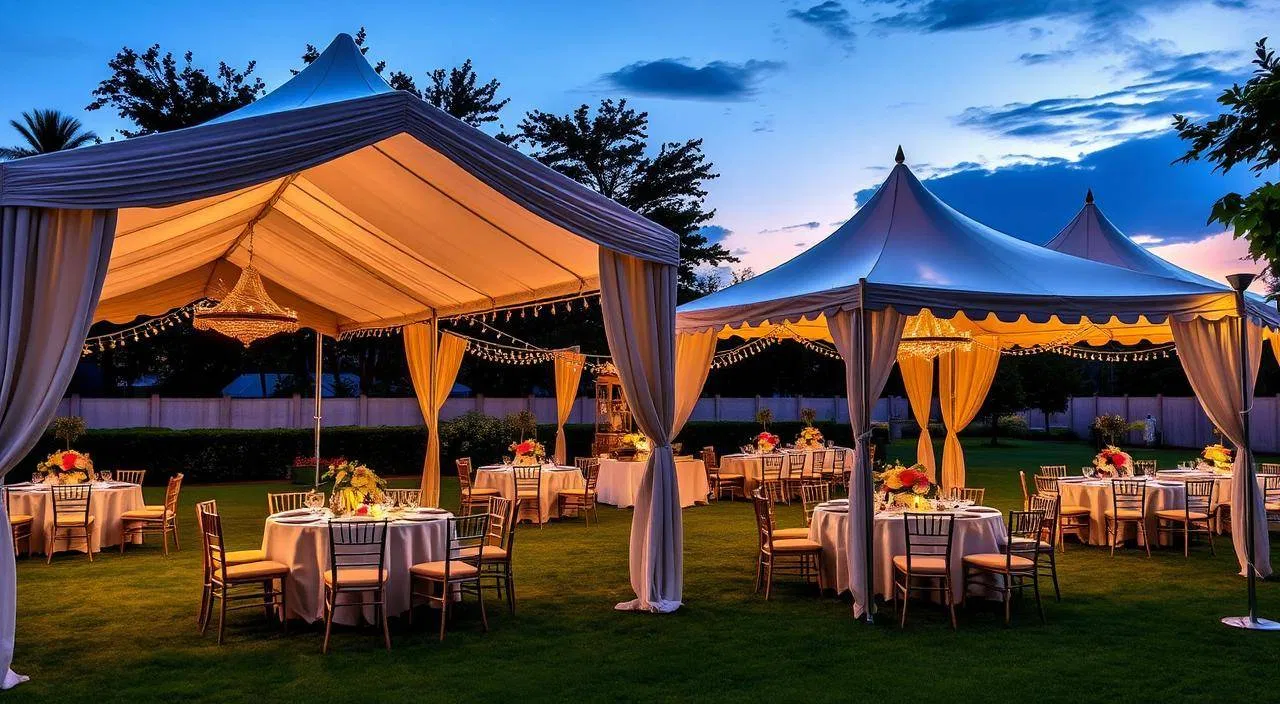 Tenda lebih dari sekedar tempat duduk. Mereka melindungi tamu dari cuaca buruk. Tenda berbingkai bisa menahan angin hingga 50 mil per jam4. Tenda yang dirancang dengan baik membuat tamu tetap nyaman dan aman. Ini penting untuk acara di luar ruangan.